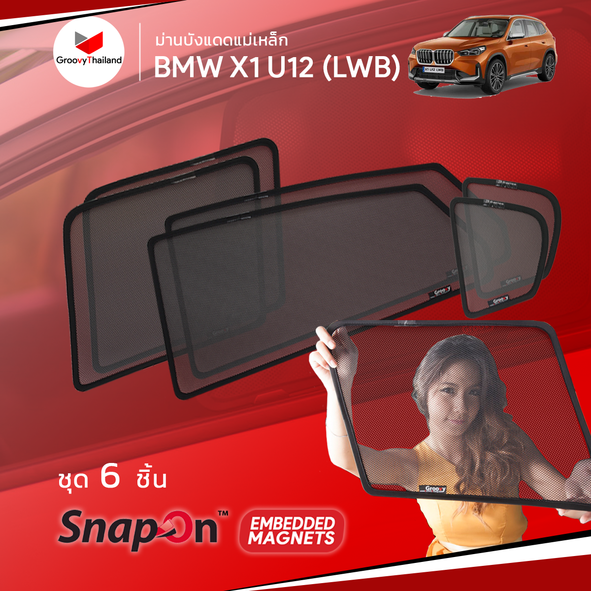 BMW X1 U12 (LWB) ม่านบังแดด SnapOn Embedded Magnets
