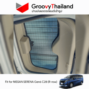 ม่านบังแดด Groovy คัดสรรเนื้อวัสดุ Polyester ที่มีลักษณะเด่นคือ ออกแบบให้เข้ารูปกับหน้าต่างเฉพาะรุ่น ม่านบังแดดรถเข้ารูป NISSAN SERENA Gen6 C28 มีความยืดหยุ่นสูง ต้านทานการลุกติดไฟ สามารถกันความร้อนและรังสี UV ได้ 67% ตามมาตรฐานของ TUV สามารถพับเก็บได้ ถอดเก็บเองได้อย่างง่ายดาย จึงให้ความสะดวกรวดเร็วในขณะที่ต้องการใช้งาน